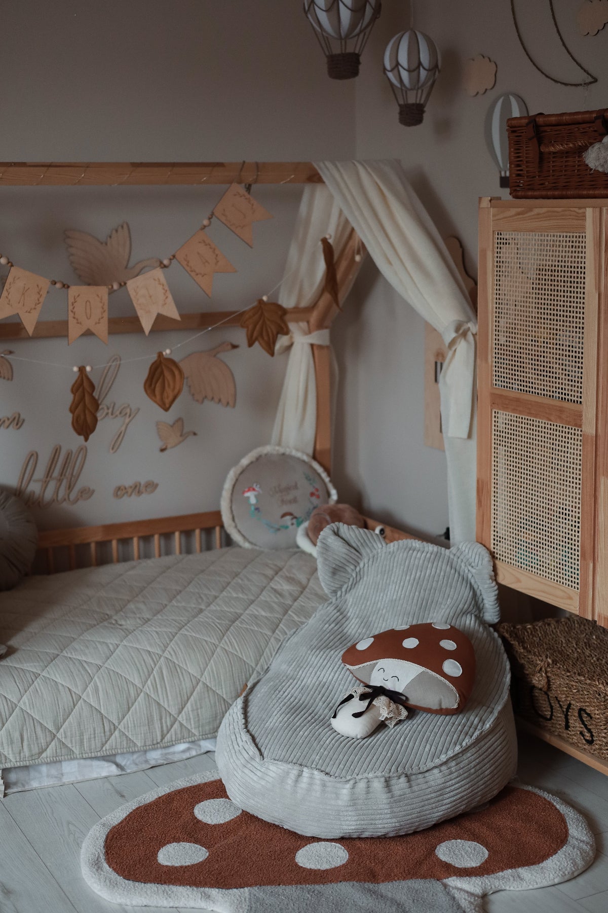 Zachte tinten, warme stof en een uitnodigend silhouet. Deze pouf voelt net zo goed als hij eruitziet — een aanwinst voor iedere kinderkamer of woonkamer.